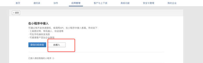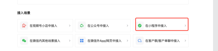 4,下面接入场景中,找到 【在小程序中接入】 点击进入