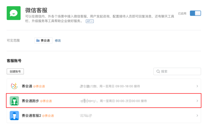 6,在应用管理-微信客服,客服账号下,选中设置的客服: