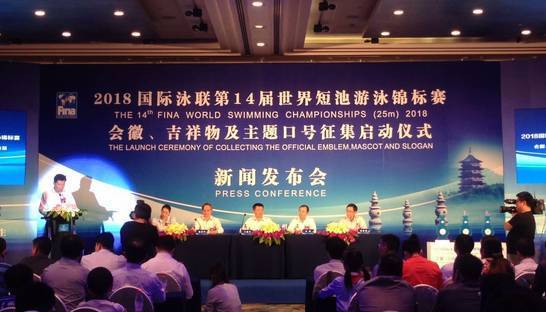 今天下午,国际泳联第14届世界短池游泳锦标赛组委会在杭州召开新闻发布会,向全球征集2018年世界短池游泳锦标赛会徽、吉祥物及主题口号。