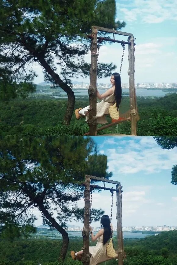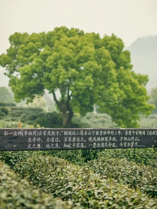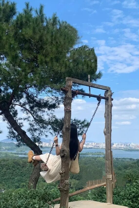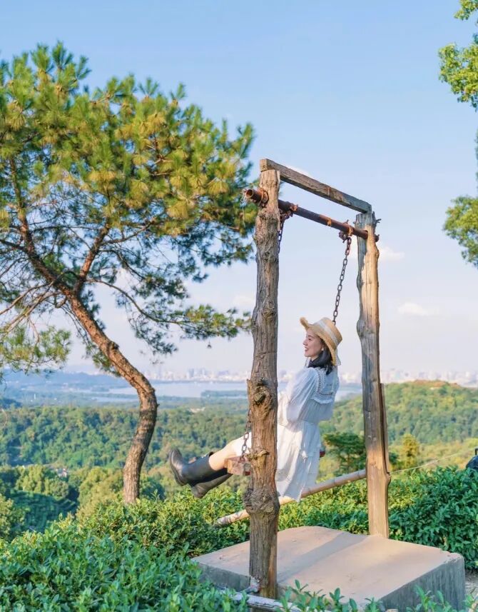 餐后继续沿着满觉陇路走,一路甜甜的桂花香,在石屋洞的佛像下许下愿望。之后集合出发穿过茶田,会遇见“千与千寻的汤屋”,沿着台阶往上爬,直到看见山顶上的秋千。坐在秋千上,可以俯瞰整个西湖!景色一级棒~~