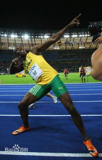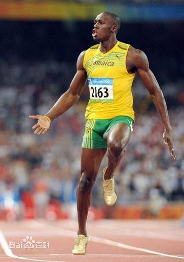 尤塞恩·博尔特,1986年8月21日生于牙买加特里洛尼,奥运会冠军,男子100米、200米世界纪录保持者。